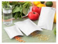 生産日本社(セイニチ)製、完全防湿包装のPET/AL/PE構成のチャック付ラミネート袋です。光沢のあるホワイトカラーですのでラベルを貼り付けても美しい外観に仕上がります。底から中身を入れた後にシール(熱による接着)する底開きの平袋タイプです。